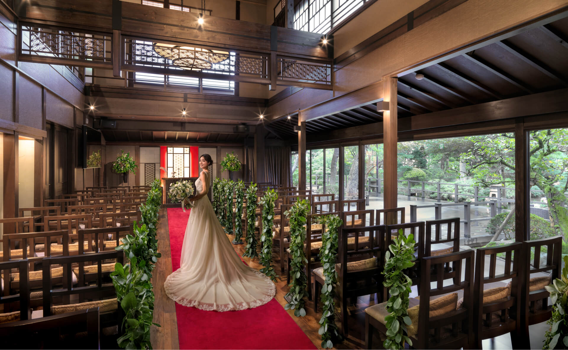 日本の伝統建築と西洋の様式美が溶け合い、ノスタルジックでありロマンチックな趣に。