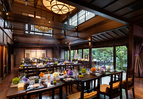 気の置けない人たちと心温まるひと時を。3年の歳月をかけて完成した美しい日本庭園を眺めながら、和やかなムードの中で絆を深める家族婚や少人数ウエディングにぴったりの会場も。おふたりのご自宅にゲストをお招きするようにお寛ぎいただけます。