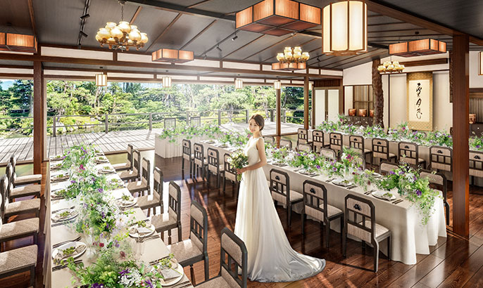 気の置けない人たちと心温まるひと時を。3年の歳月をかけて完成した美しい日本庭園を眺めながら、和やかなムードの中で絆を深める家族婚や少人数ウエディングにぴったりの会場も。おふたりのご自宅にゲストをお招きするようにお寛ぎください。