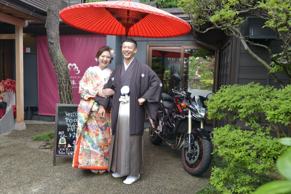 「バイクを絶対に飾りたい!」結婚式の朝 雨の中さっそうとバイクで来館!